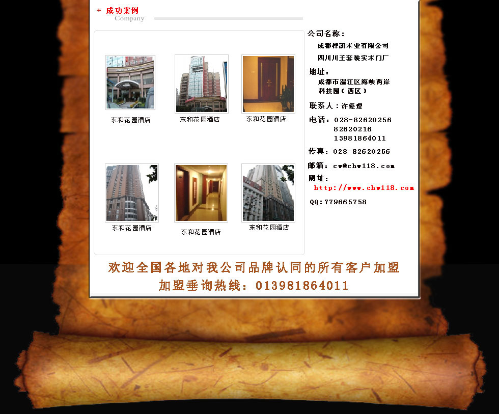 成都樺凱木業(yè)有限公司. 以生產(chǎn)經(jīng)營(yíng)“川王”品牌原木門和實(shí)木木質(zhì)門為主,在成都臺(tái)商投資區(qū)建立了近2萬平方米的生產(chǎn)基地。公司直營(yíng)店遍布重慶和西南三省主要建材市場(chǎng)和裝飾城,并建立了全國(guó)各地的經(jīng)銷網(wǎng)絡(luò)。我公司主要制定了整套與銷售配套的售后服務(wù)體系。在全國(guó)實(shí)施后收到了良好的成效。 “川王”品牌至今經(jīng)過十余年的努力,在川渝兩地形成直營(yíng)店10多家、各地經(jīng)銷商數(shù)十家的產(chǎn)供銷一條龍的企業(yè),銷售木門十多年來,積累了豐富的市場(chǎng)開拓及售后服務(wù)經(jīng)驗(yàn),創(chuàng)造了十年零投訴的市場(chǎng)佳績(jī)。 公司經(jīng)過十余年的發(fā)展,現(xiàn)擁有一批高素質(zhì)的生產(chǎn)經(jīng)營(yíng)管理團(tuán)隊(duì),其中工商管理碩士2名,中級(jí)技術(shù)職稱人員8名,大中專畢業(yè)生40多名,并擁有一大批熟練的操作工人和技術(shù)人員。公司還同四川大學(xué)藝術(shù)學(xué)院聯(lián)合開辦研究所,合作開發(fā)木門新產(chǎn)品,具有很強(qiáng)的創(chuàng)新能力,強(qiáng)力支撐企業(yè)市場(chǎng)競(jìng)爭(zhēng)與發(fā)展。